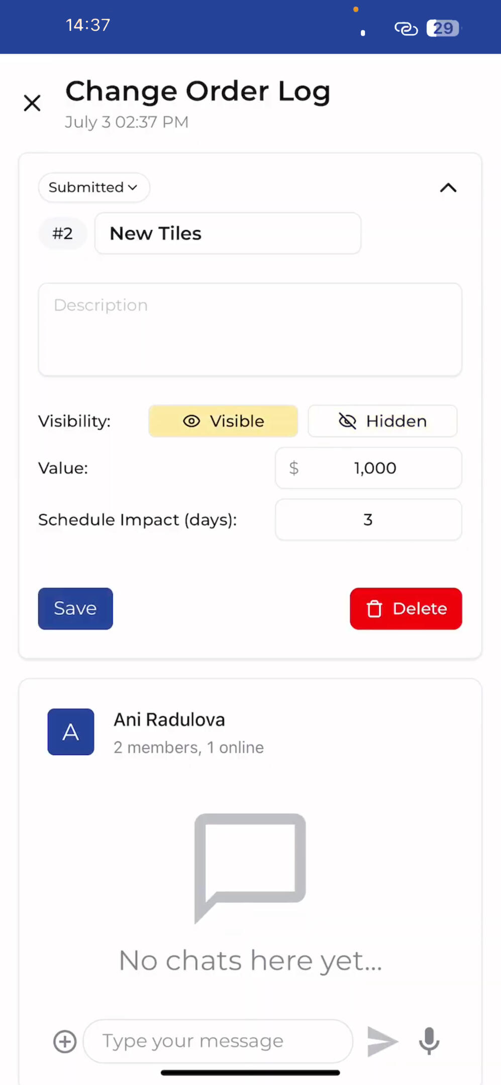 Keep change orders hidden (not visible to client) until they are ready for submission.